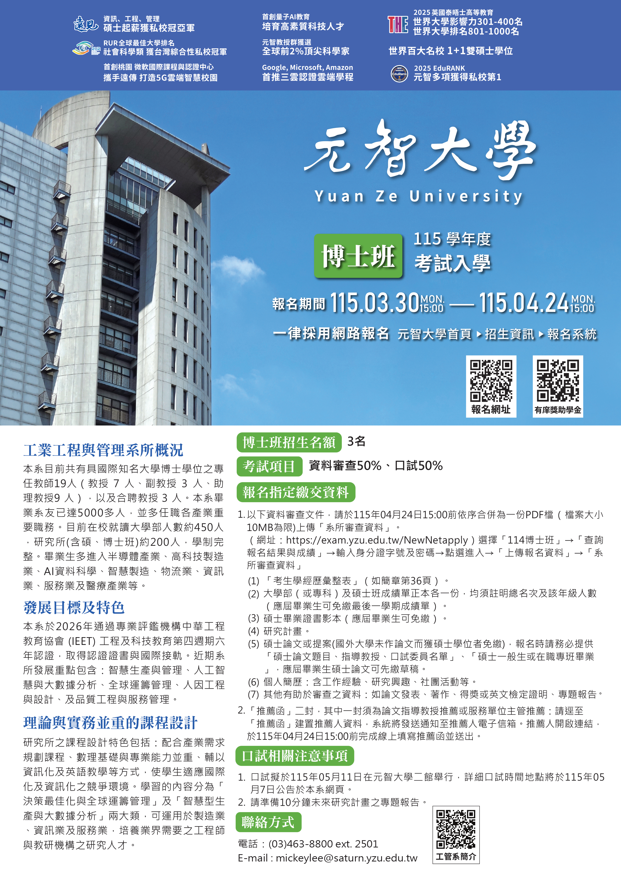 元智大學工業工程與管理學系所