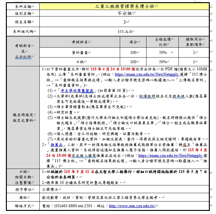 115學年度博士班(考試入學)